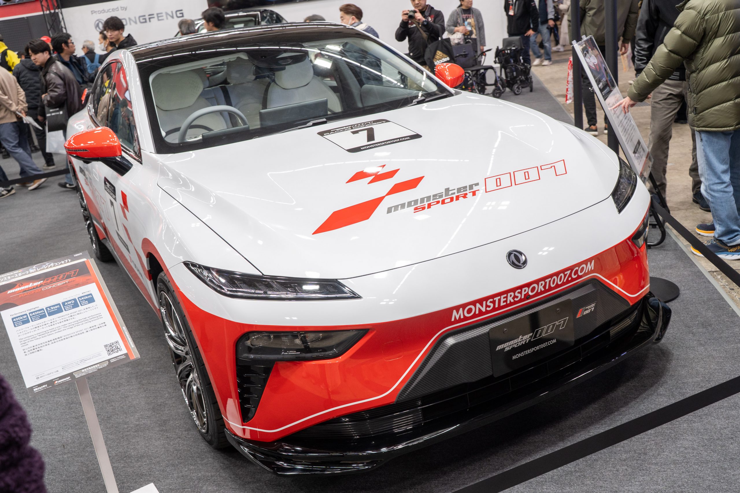 そんなTAJIMAが今回発表した「MONSTER SPORT 007」は、東風汽車が2024年から中国で販売する「eπ 007」をベースとするスポーツBEVだ。TAJIMAの関連会社「ZEV&NEVインターナショナル」が輸入代理店として「DONGFENG JAPAN(ドンフェン ジャパン)」を展開し、TAJIMAではカスタムモデルを扱う形になる。