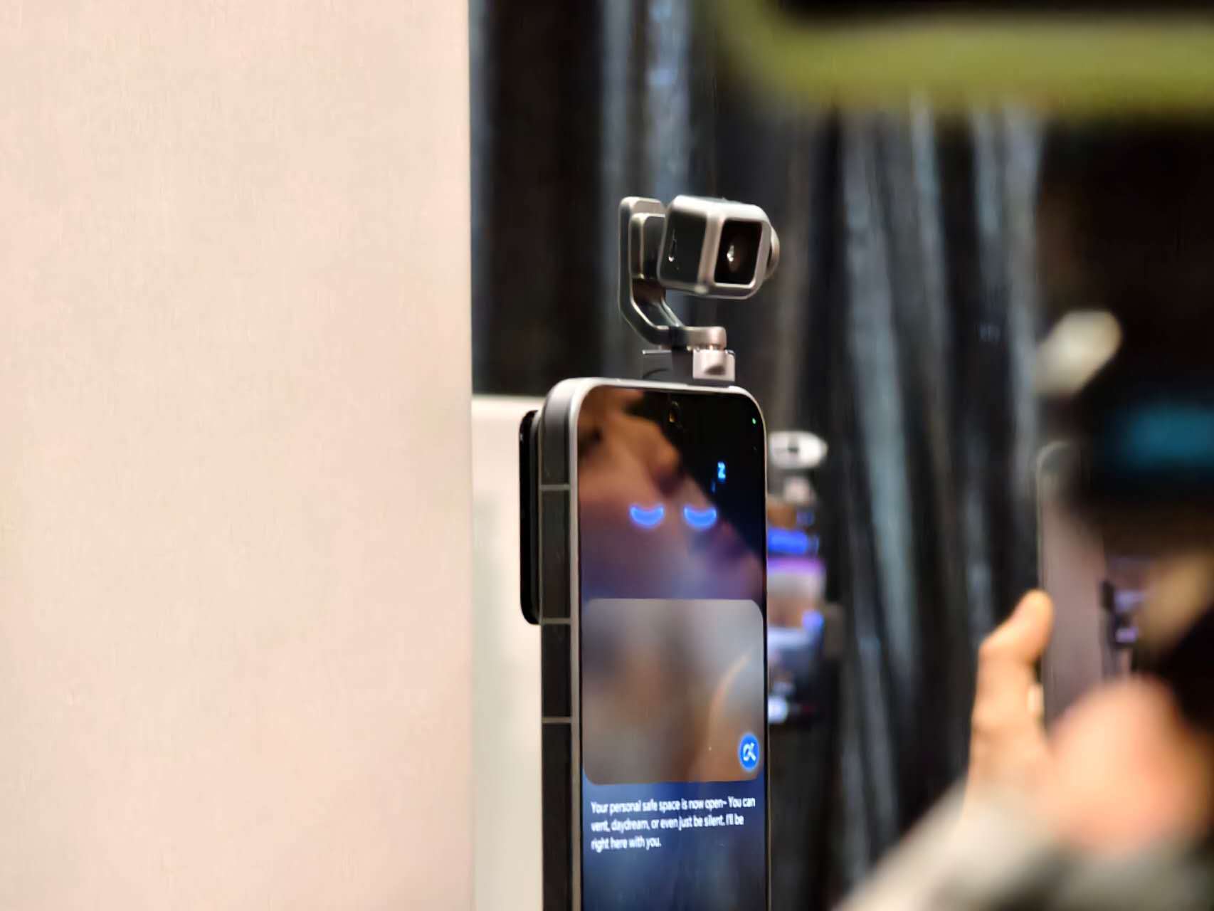 発表後の展示には報道陣らがRobot Phoneに殺到し、スタッフが「30〜50cmの距離で手のひらをかざし、後ろに傾けるとジンバルが立ち上がる」とジェスチャーから操作を開始。